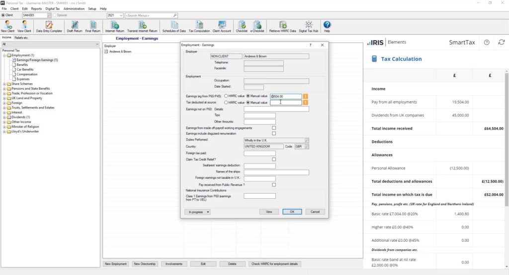 IRIS Elements SmartTax reduces the time it takes to run a tax calculation with a simple, user-friendly calculator, always visible through your IRIS Personal Tax product.
